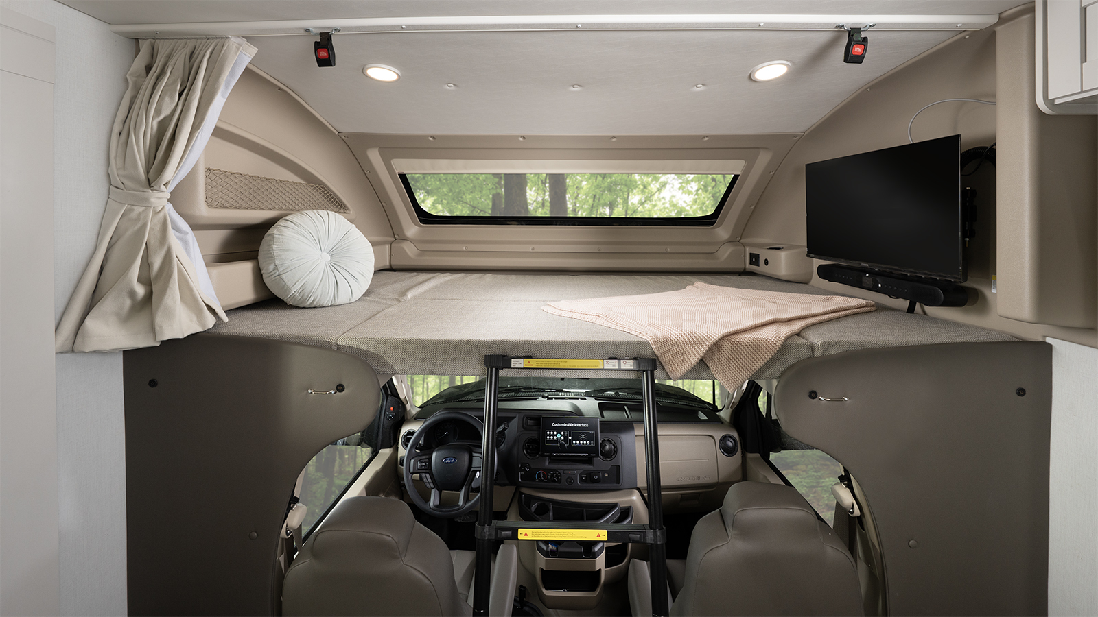 The 2026 Greyhawk is Jayco's amenity-rich, top-of-the-line gas Class C motorhome. With features like a seamless, one-piece front cap, Jayco sets a high standard in the Class C category, giving owners greater durability and protection against moisture and debris. That means more time enjoying your RV and less time in the service bay. Built on the Ford® E-450 chassis, the Greyhawk looks as sharp as it handles. Its JRide® Plus ride and handling package includes a computer-balanced driveshaft, Koni® FSD shocks, heavy-duty rear stabilizer bar, front stabilizer bar, Hellwig® helper springs and rubber isolation mounts. Together, these components create a smooth, stable ride whether you’re on the highway or heading to a scenic campsite. Off-grid adventures are made easy with a 4,000W generator with auto-gen start and a 1,000W inverter. The generator draws from the fuel tank and automatically turns on when power is needed, giving you reliable energy without the hassle. To keep things cool and comfortable, the 15,000 BTU A/C with a heat pump comes standard, or you can choose optional dual A/Cs with a power management system that adjusts energy use to prevent overloads and keep things running smoothly.