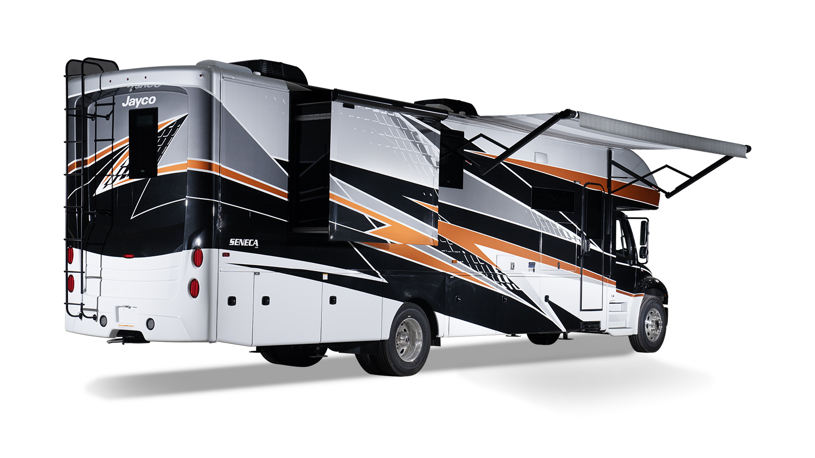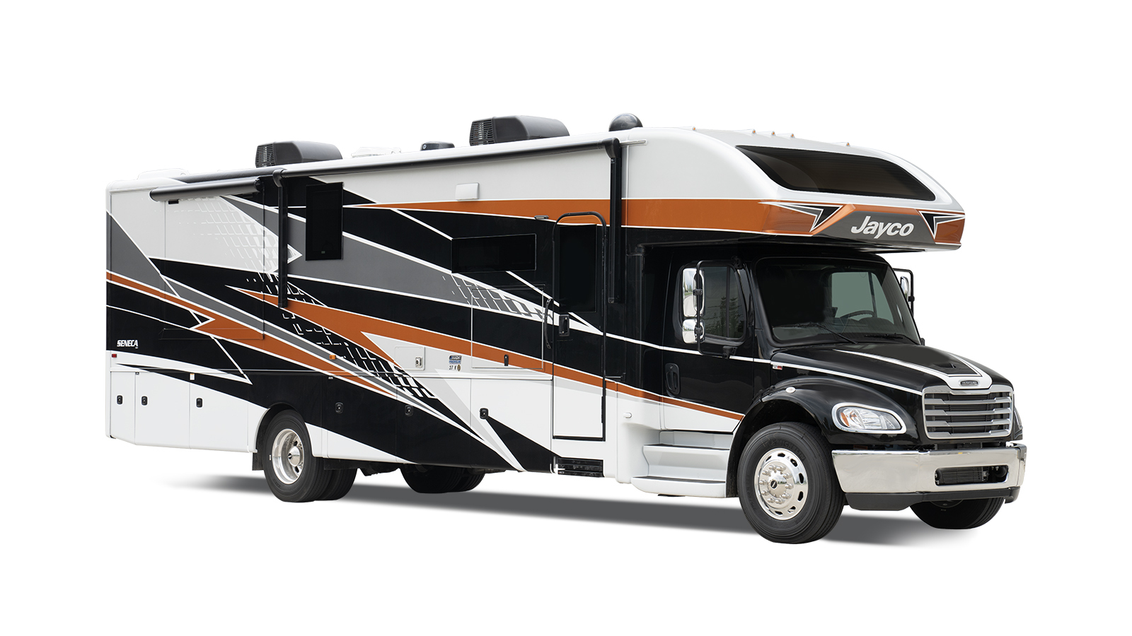 Enjoy all the comforts of home wherever you are in the Jayco Seneca. This powerful diesel Super C is built on the Freightliner® S2RV Plus chassis and powered by a Cummins® ISB 6.7L 360HP diesel engine. With a 100-gallon fuel tank, you can cover more ground between stops and reach your destination faster. It’s a great fit for travelers who want diesel performance and an impressive 12,000-pound tow capacity. The JRide® Premium handling package makes every trip smooth and comfortable thanks to a computer-balanced driveshaft, rear air suspension, a heavy-duty rear stabilizer bar and SACHS shocks. Full air brakes provide strong, confident stopping power, especially on grades, and improve ride stability while absorbing road vibrations. In the Seneca, the ride itself becomes part of the adventure.